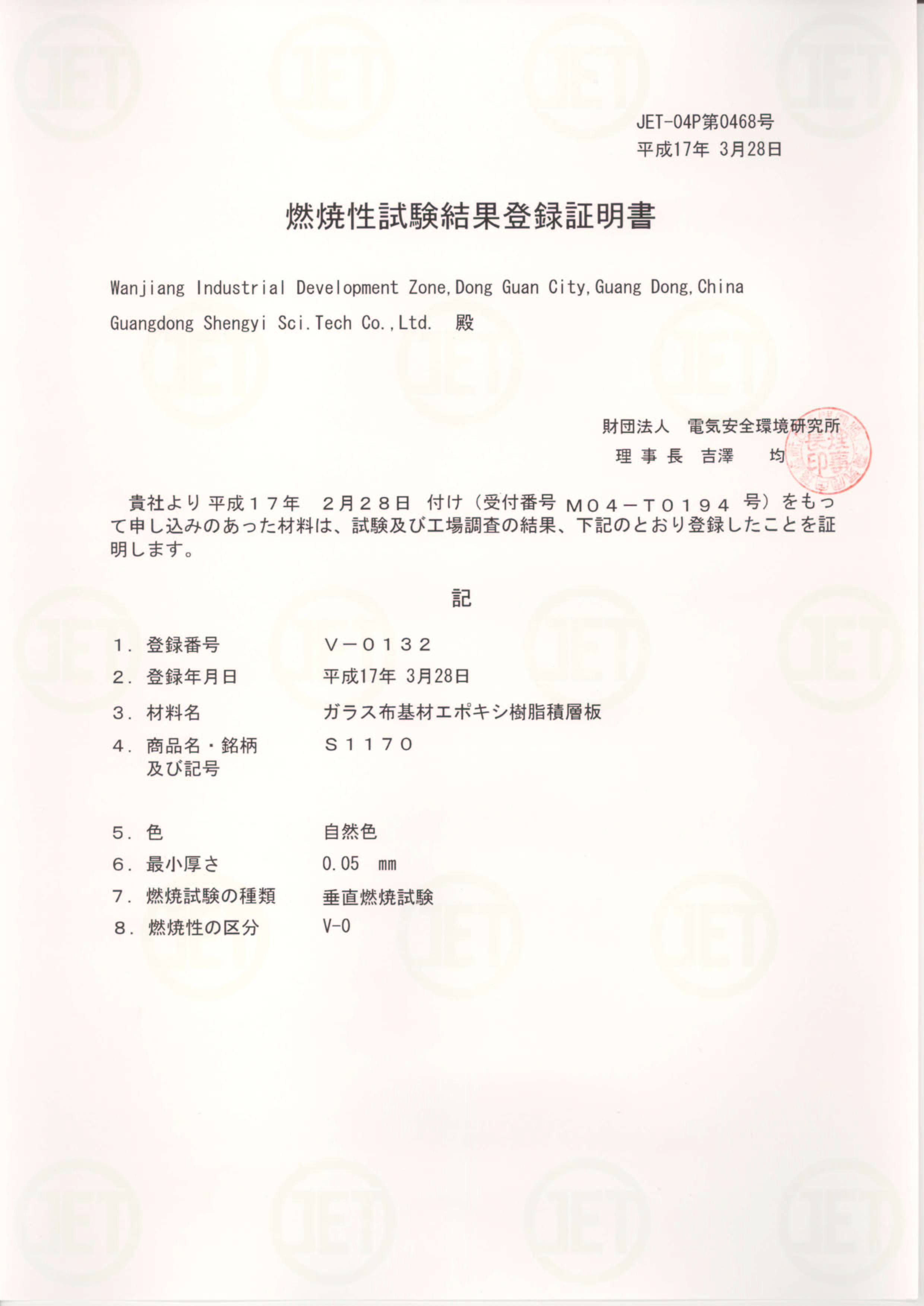 SAFETY CERTIFICATION