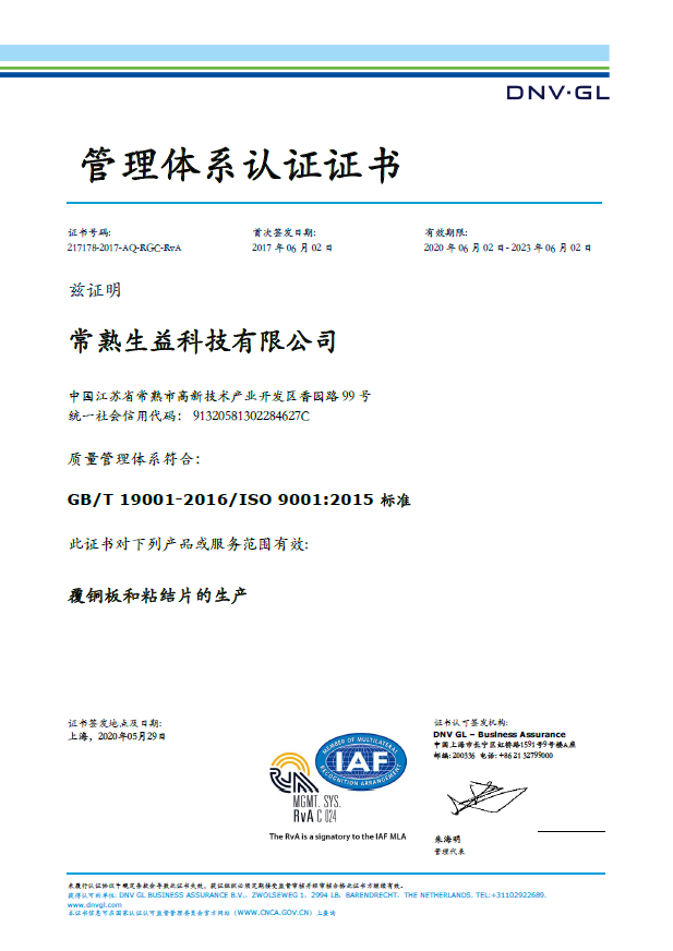 ISO9001证书(常熟必一运动)